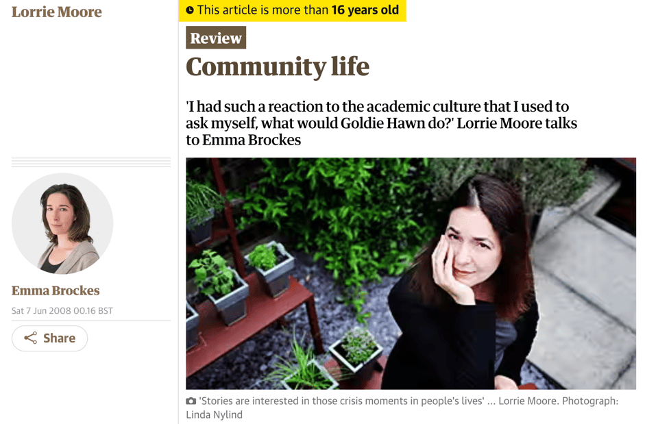 I loved that idea of unsayable life, so I read this Guardian piece about Laurie Moore to get some more context, and was rudely reminded that 2008 was 16 years ago.